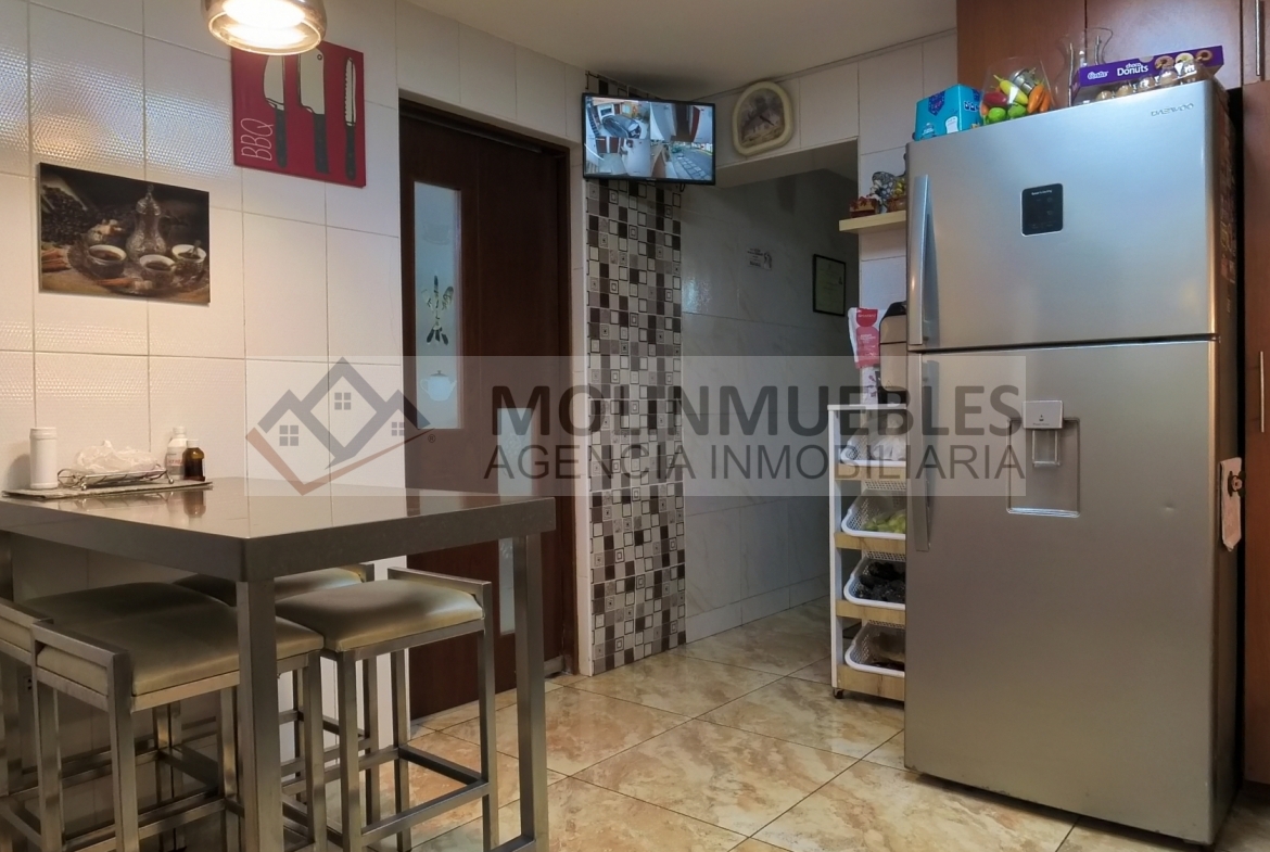 En el cuarto piso encontramos 1 mini departamento que consta de 1 habitación, 1 baño completo, sala, cocina equipada tipo americana y 2 habitaciones adicionales que comparten un baño completo, todo el cuarto piso posee techo aligerado, además posee una amplia lavandería compartida con tendal.