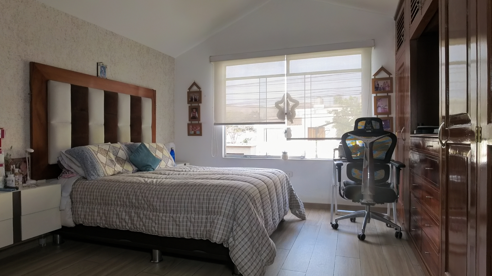 En el segundo piso encontramos 3 dormitorios con amplios clósets dobles, el dormitorio principal cuenta con walking closet y baño incorporado con jacuzzi, un baño completo que comparten los otros dos dormitorios adicionales.